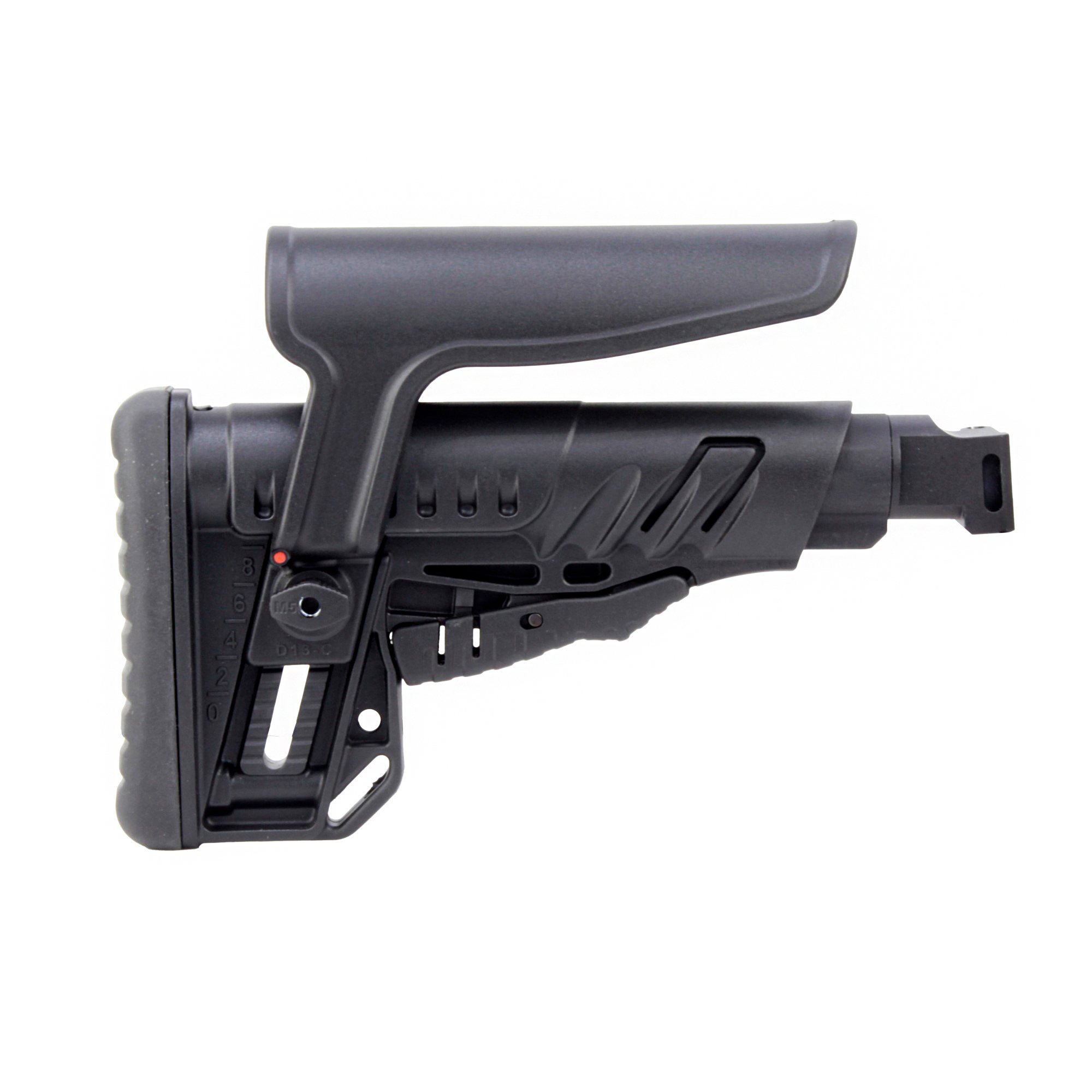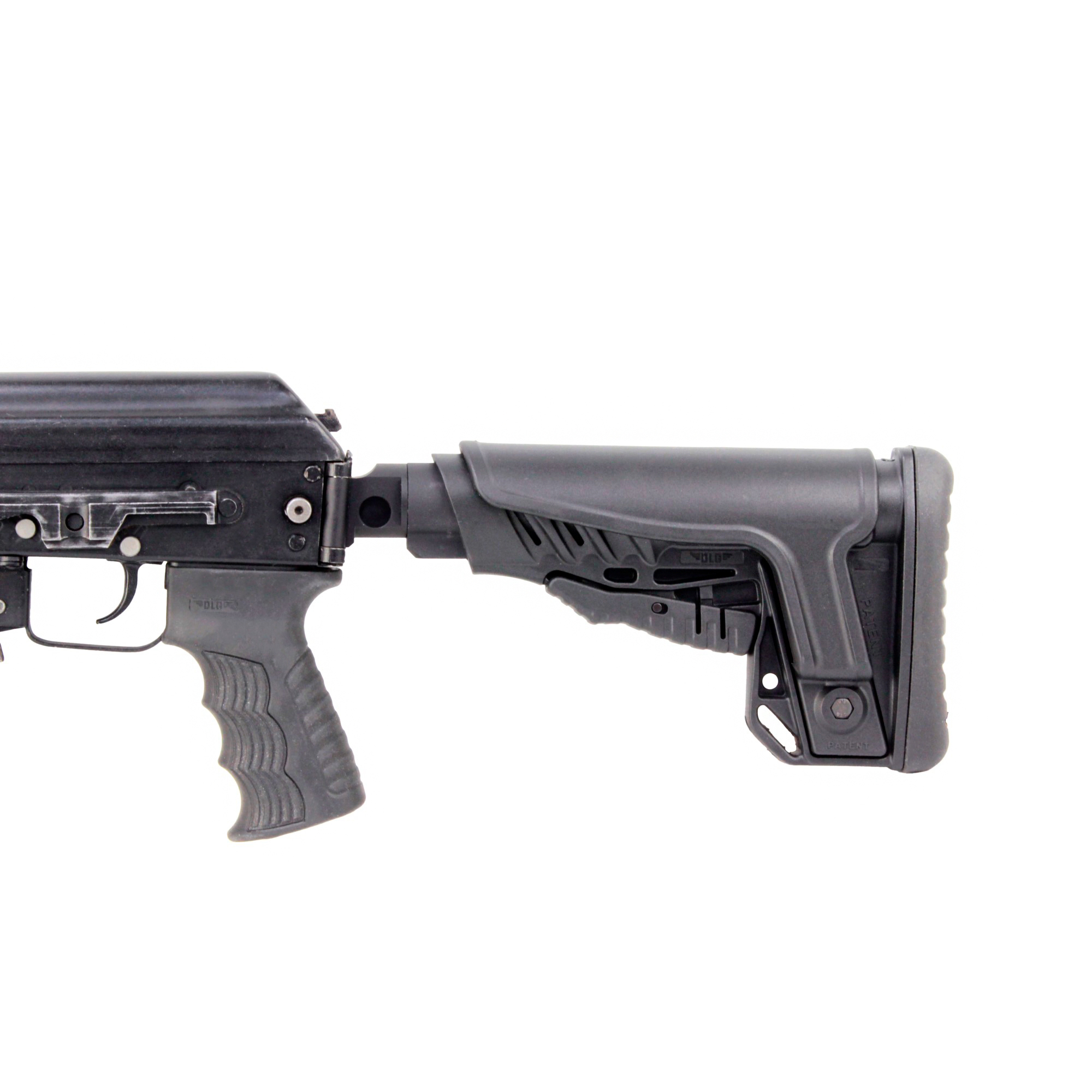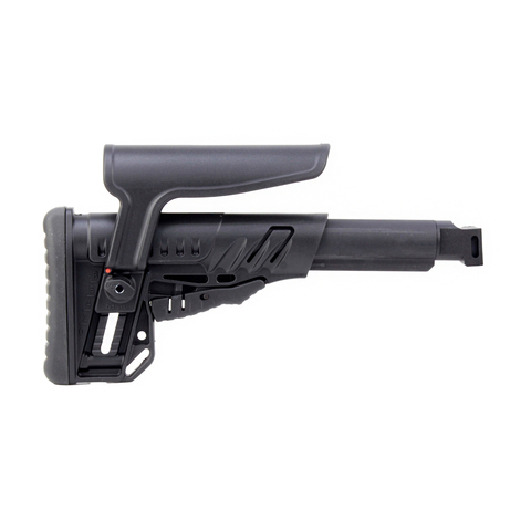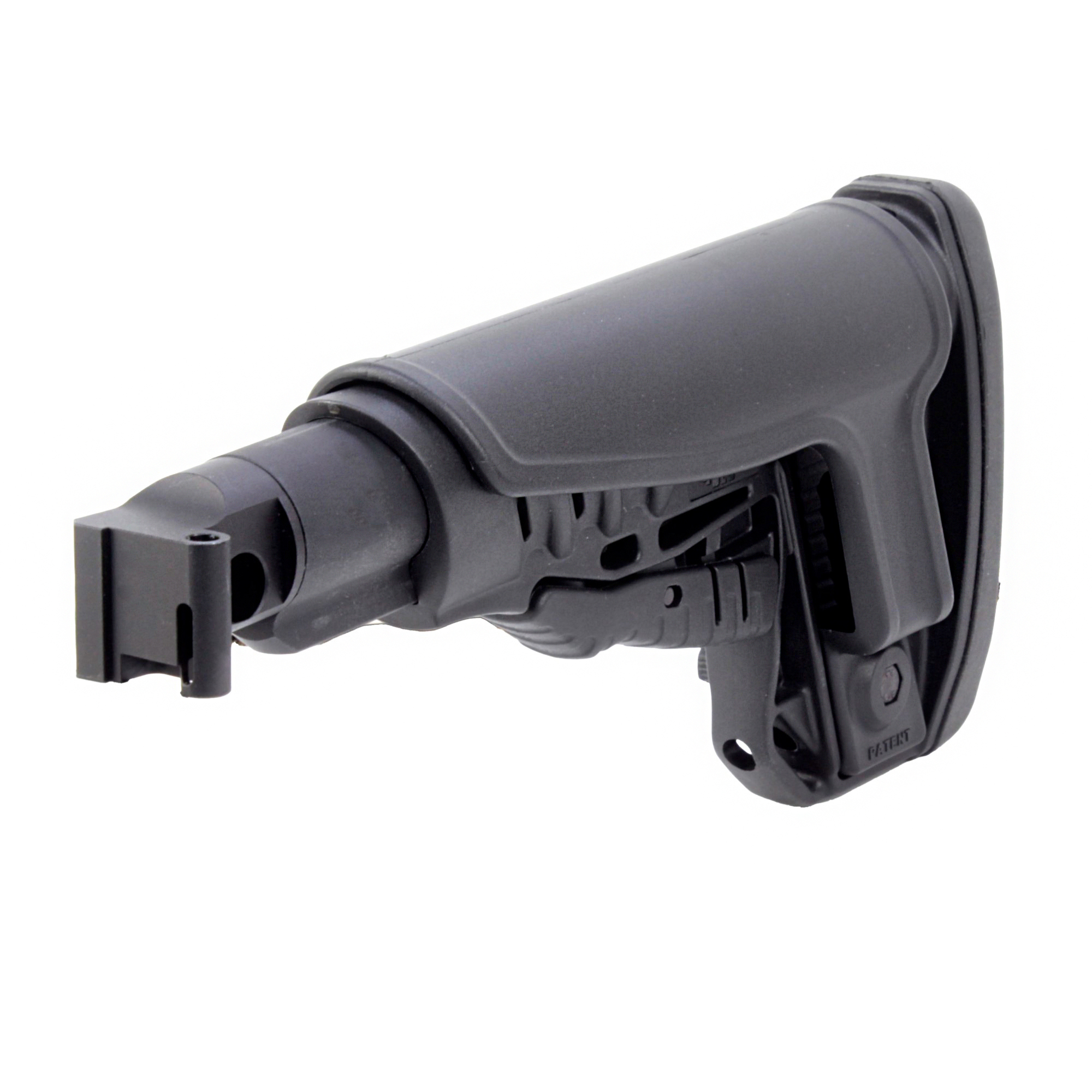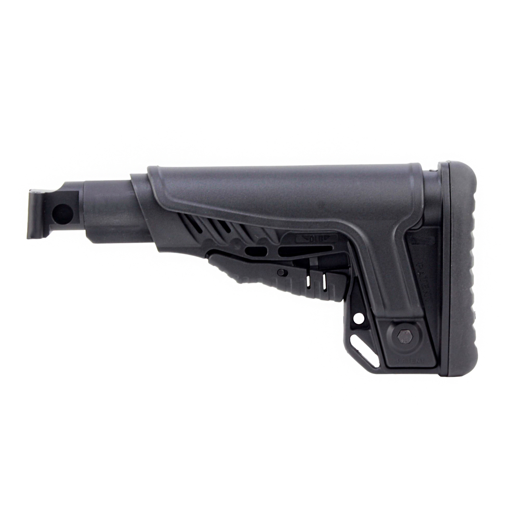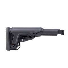 Складной телескопический приклад с блокировкой УСМ при складывании. Идеальный вариант для гражданских стрелков. Широкий и длинный подщёчник гарантирует удобную вкладку, а 9 положений регулировки - идеальную настройку под оптические прицельные или коллиматоры.