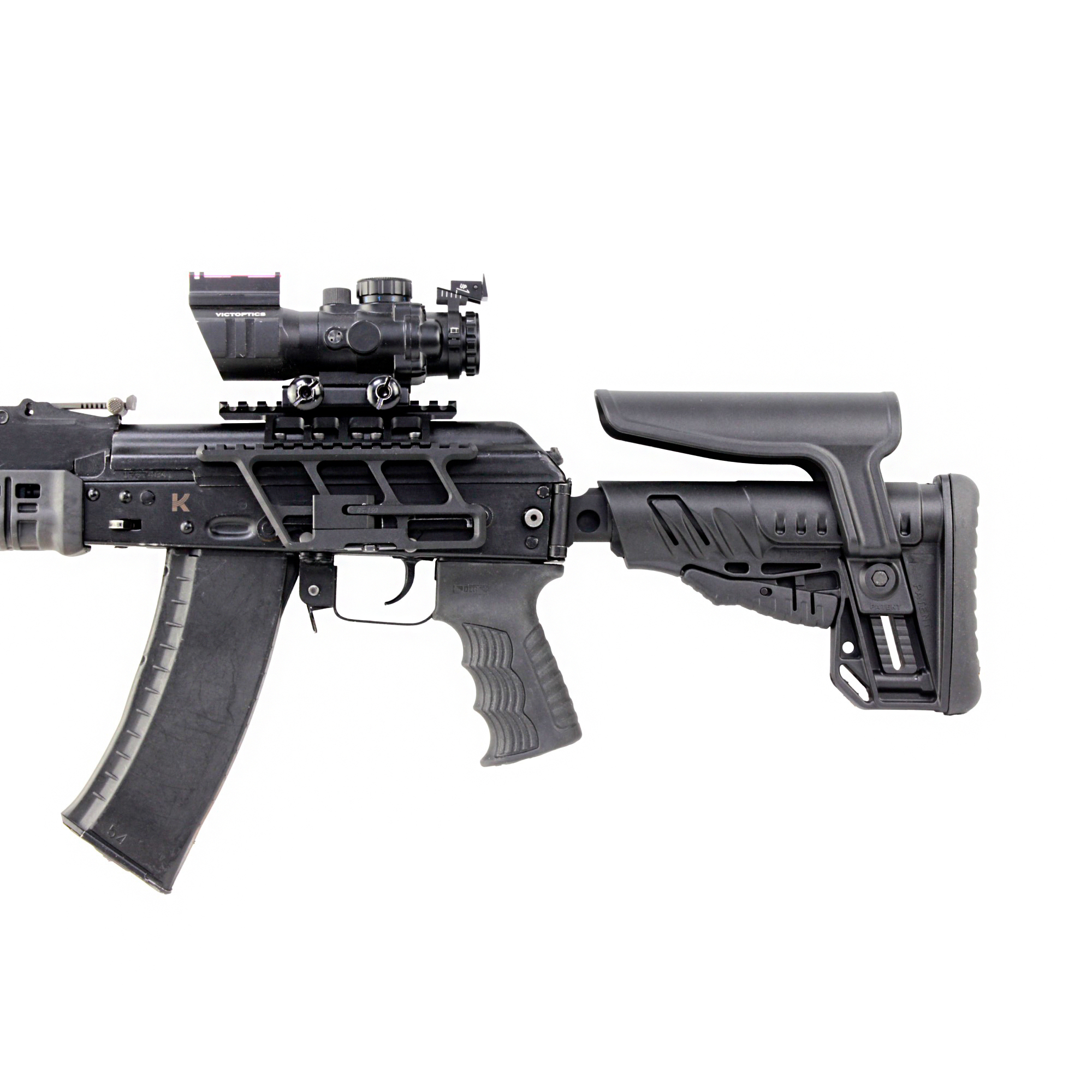 Складной телескопический приклад с подщечником - комплект для установки на складные версии автомата Калашникова и его гражданские аналоги. Улучшает управляемость, делает вкладку более комфортной, улучшает прицеливание в коллиматоры и оптику.